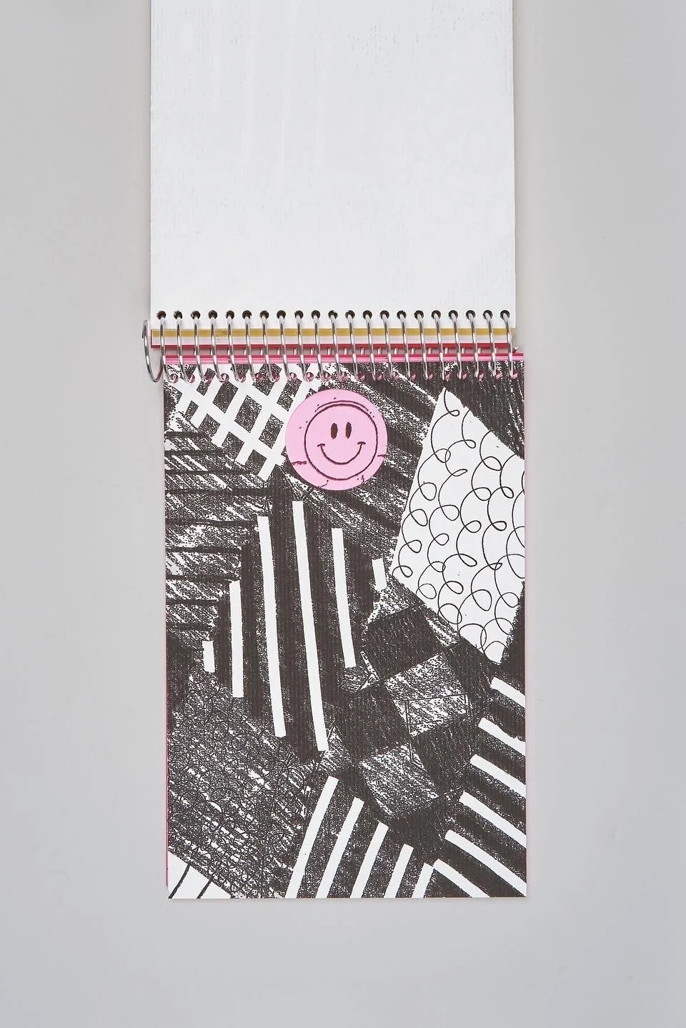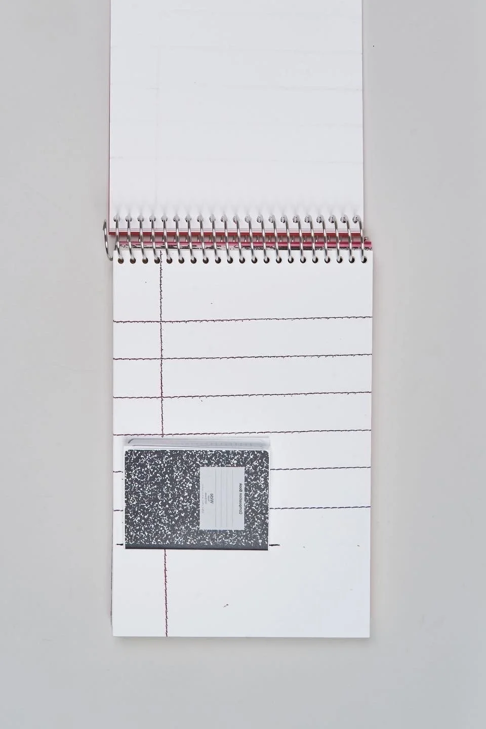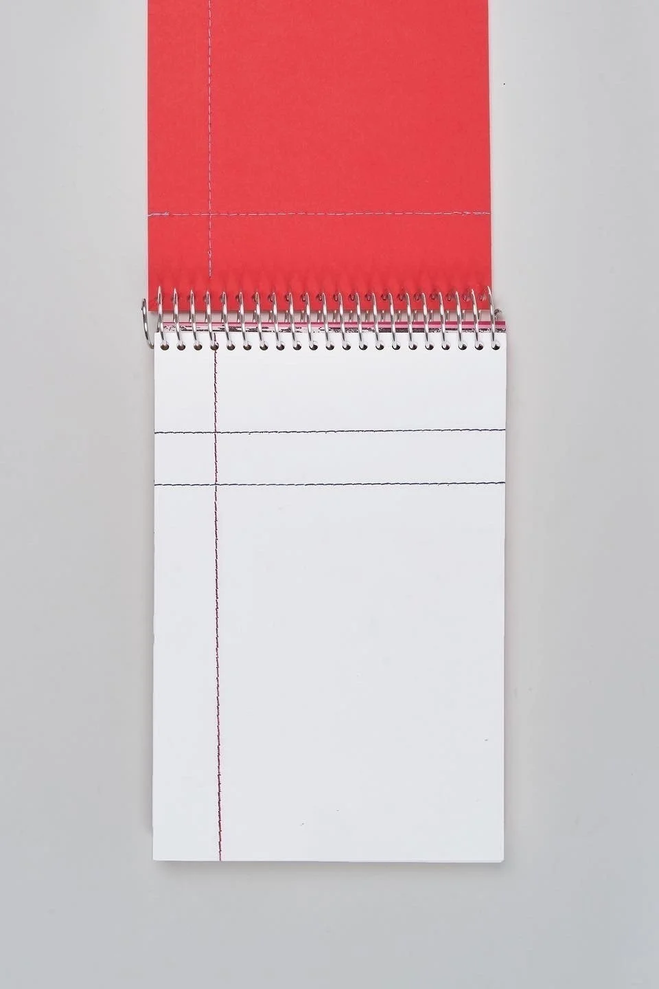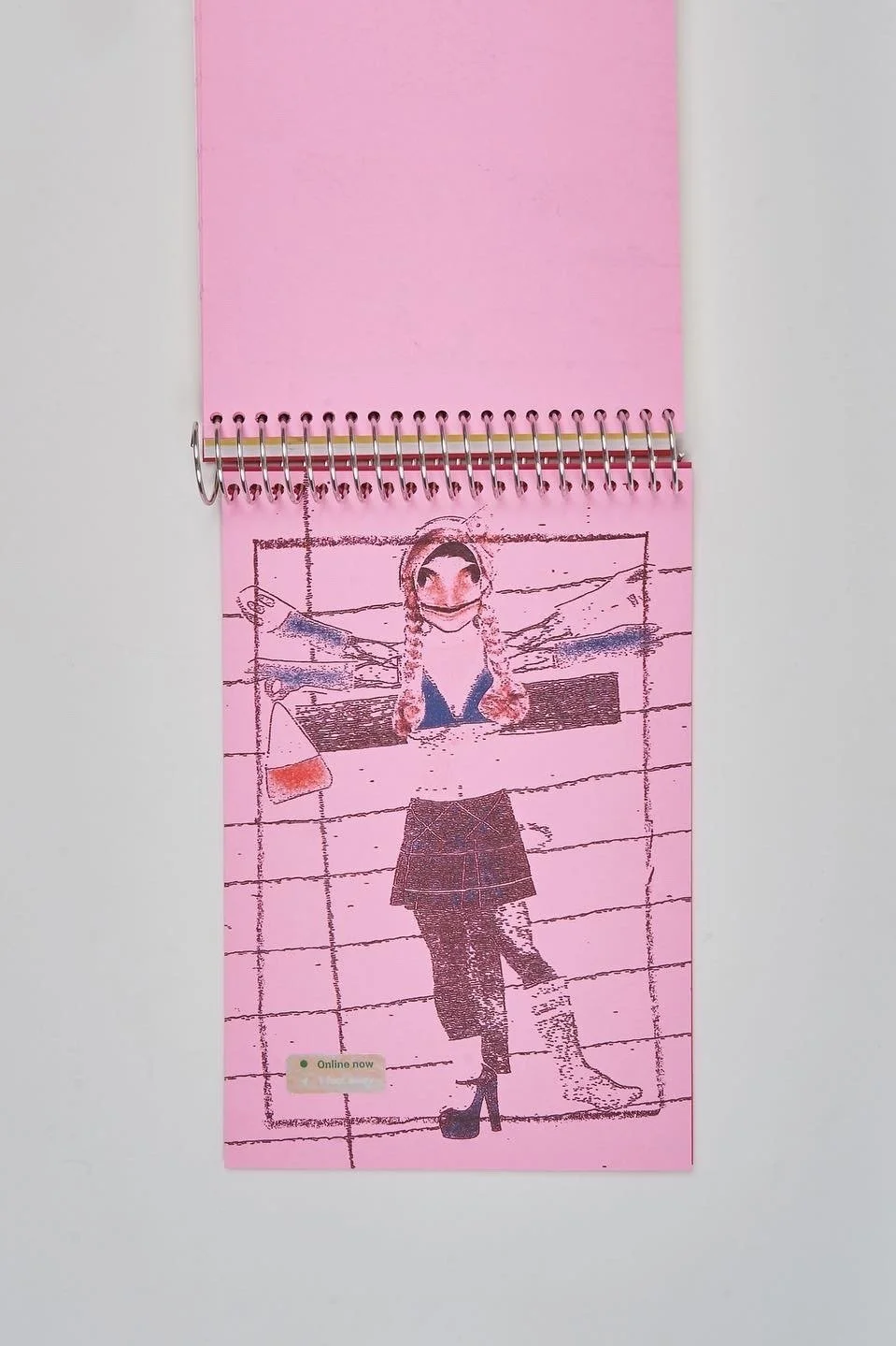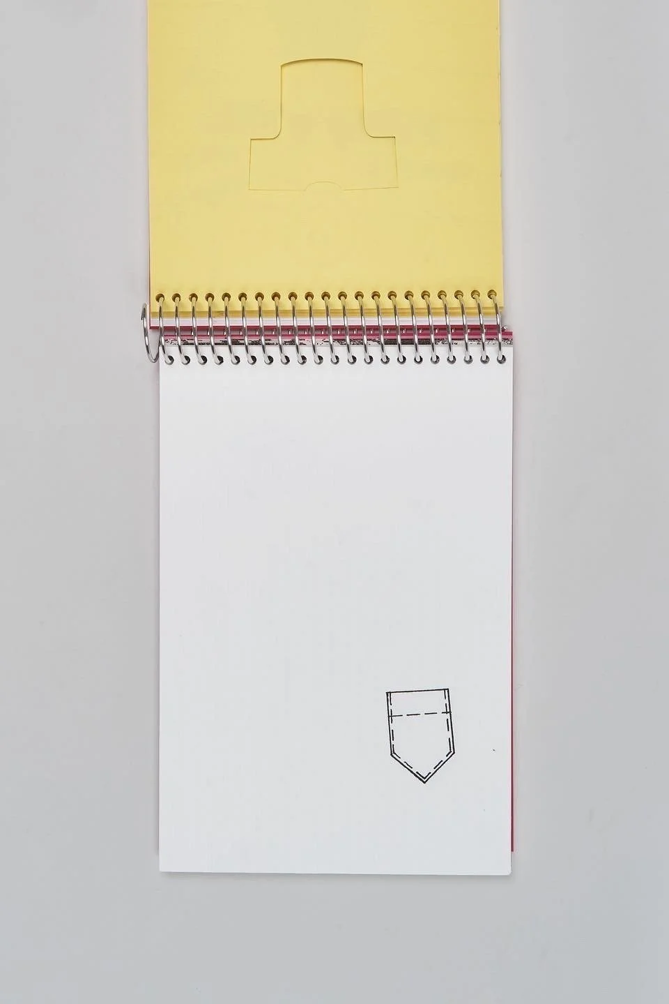96 pages; metal coil bound; 3 color risograph printed in black, federal blue, red ink; 4 color laser printed; 3 sewn inserts; 2 die-cuts; holographic sticker, colophon
