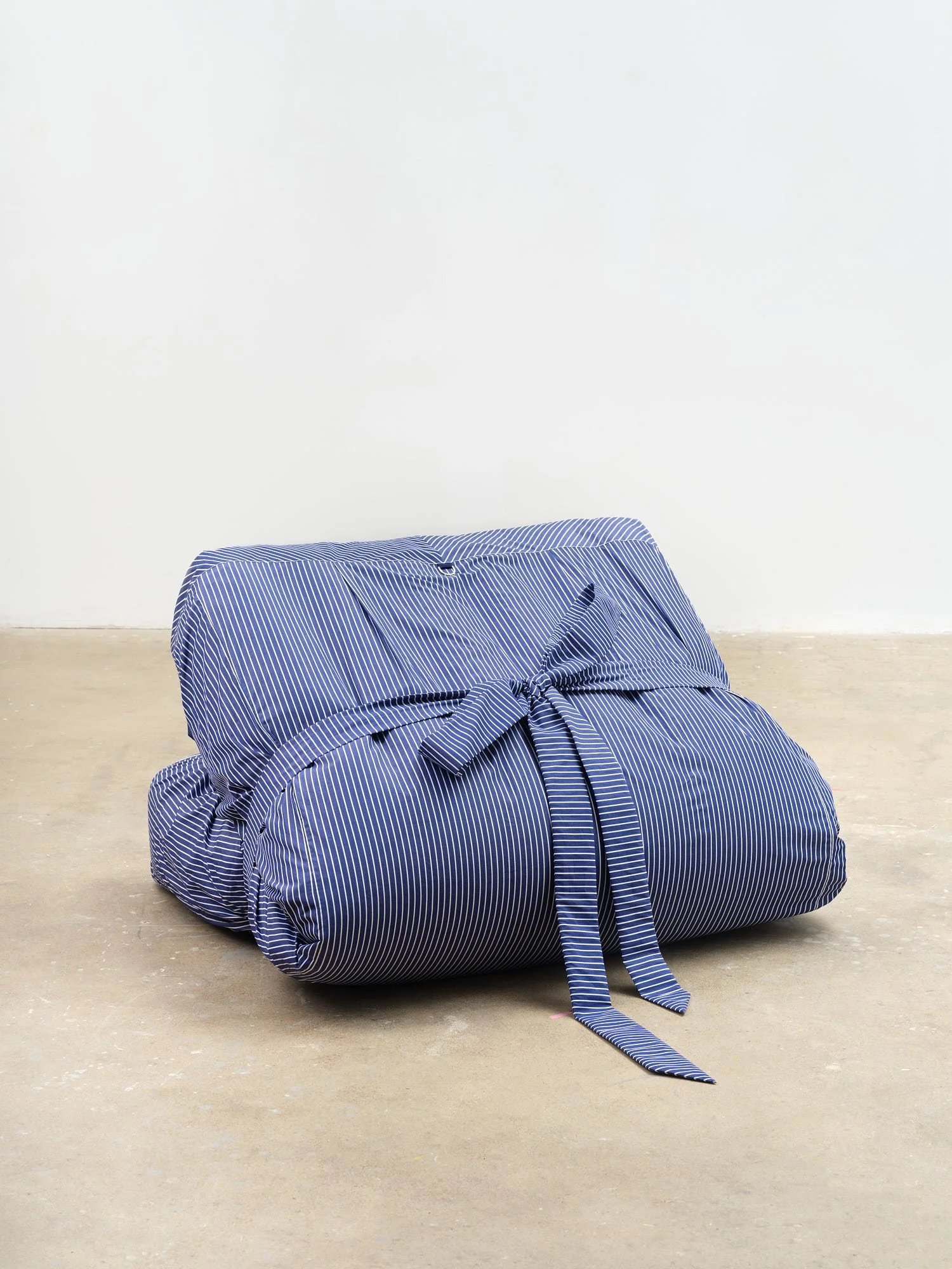office chair, backpack straps, fabric covered buttons, cotton thread