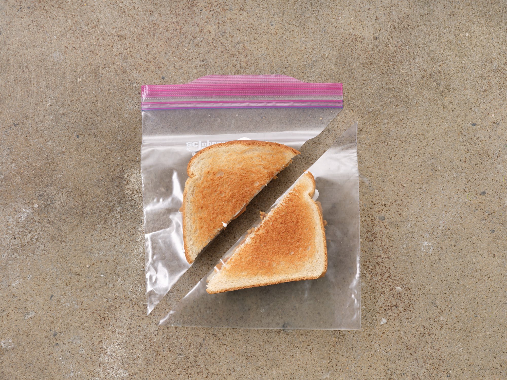 white bread, ziploc bag, marshmallow fluff, peanut butter